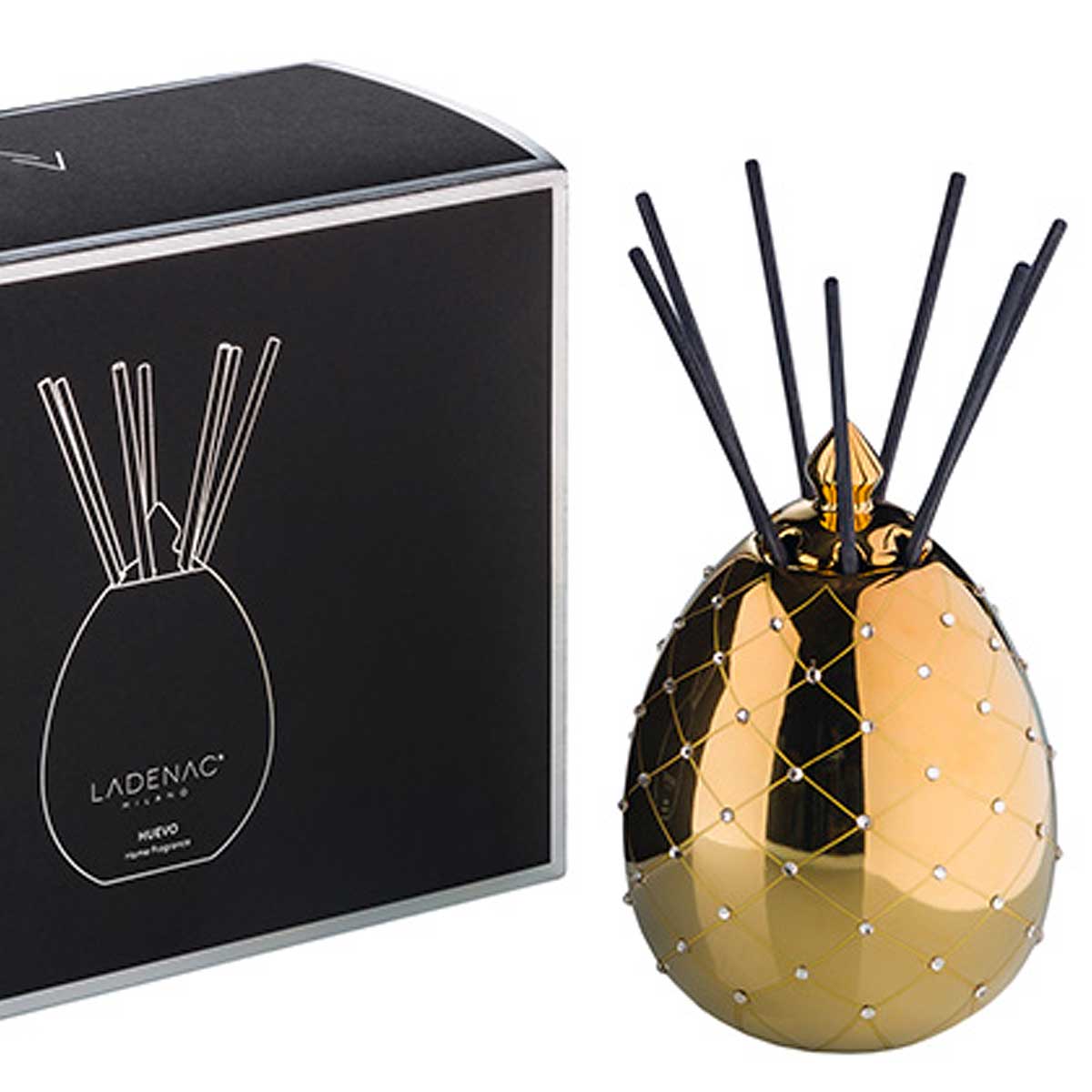 Ladenac – Huevo Home Fragrance Diffusore Profumo Oro e Cristalli con Rattan Stick e Refill 250ml
