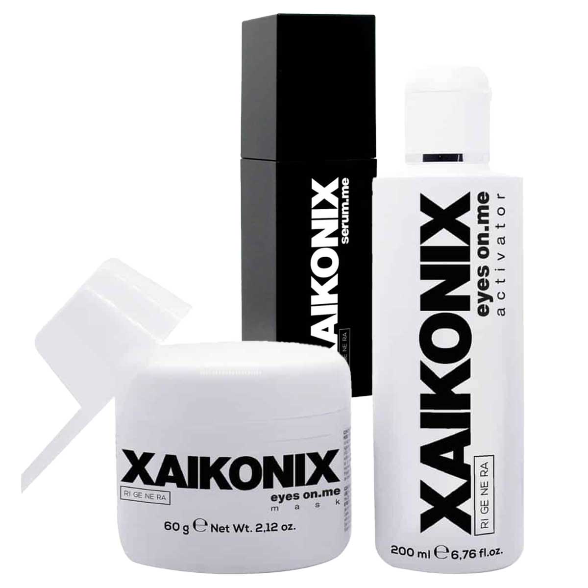1 x Rigenera Xaikonix Eyes on.me è una maschera per il contorno occhi che permette di ridare al viso, ma sopratutto al proprio sguardo, luminosità e freschezza combattendo gli inestetismi del passare del tempo. Dalle caratteristiche anti età ed idratante, Rigenera Xaikonix Eyes on.me è composto 2 prodotti: il mask ed il suo attivatore da miscelare tra loro. Il Mask è una polvere impalpabile, mentre l’Activator è sottoforma di liquido semi denso. Unendo i due prodotti insieme si ottiene il composto perfetto per trattare in modo mirato l’imperfezione e l’inestetismo di occhiaie. Ridona al tuo sguardo giovinezza.